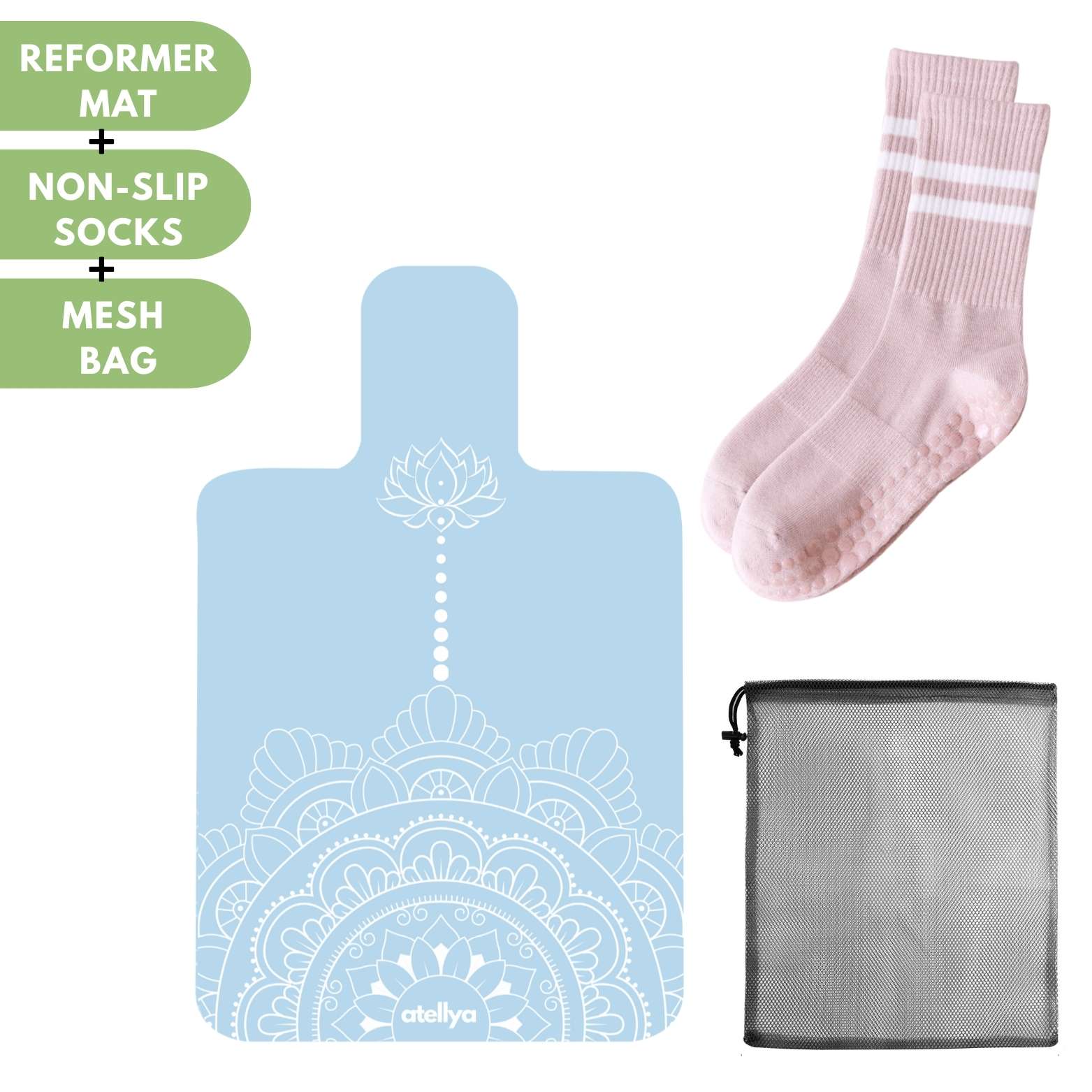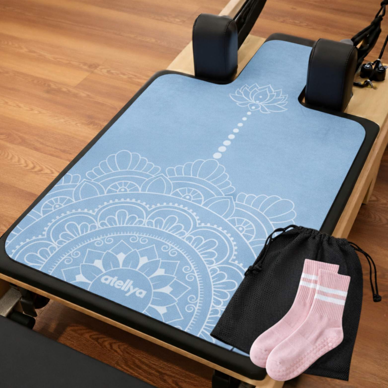 With included non-slip socks and a breathable carry bag, the Atellya reformer pilates mat set gives you everything you need to practice with confidence—no matter where your session takes place.